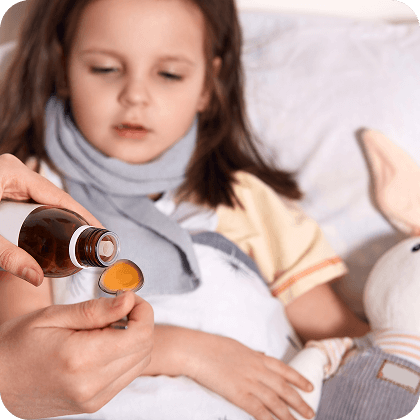 Иногда остаточный сухой кашель после простуды может снижать качество жизни ребёнка. В таких случаях врач может посчитать необходимым назначить препараты, содержащие бутамирата цитрат. Они борются с бронхоспазмом, снижают интенсивность кашля1,2. Перед применением необходимо проконсультироваться со специалистом.