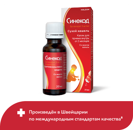 Бутамирата цитрат является действующим веществом оригинальных препаратов Синекод8.